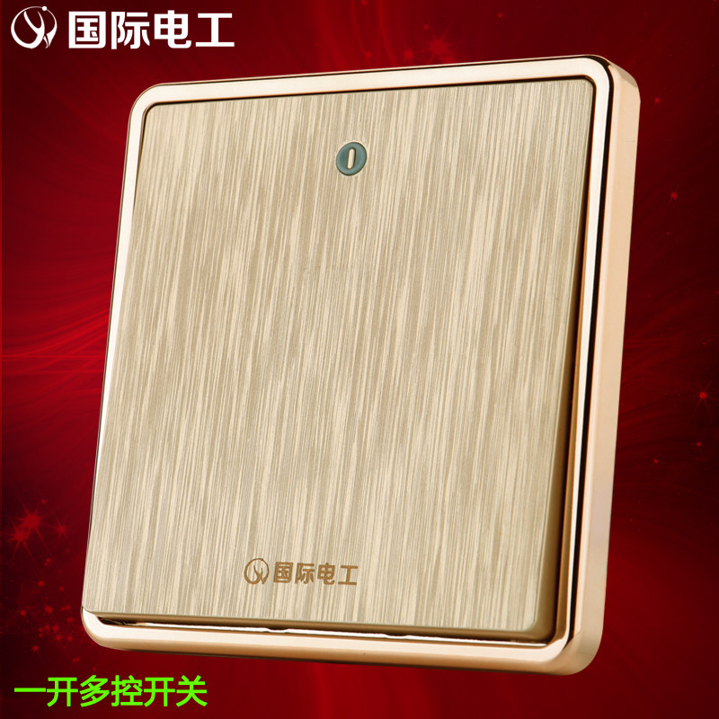 International electrotechnical one-open multi-control switch midway switch double-pole double-throw three-control 86 champagne gold household panel