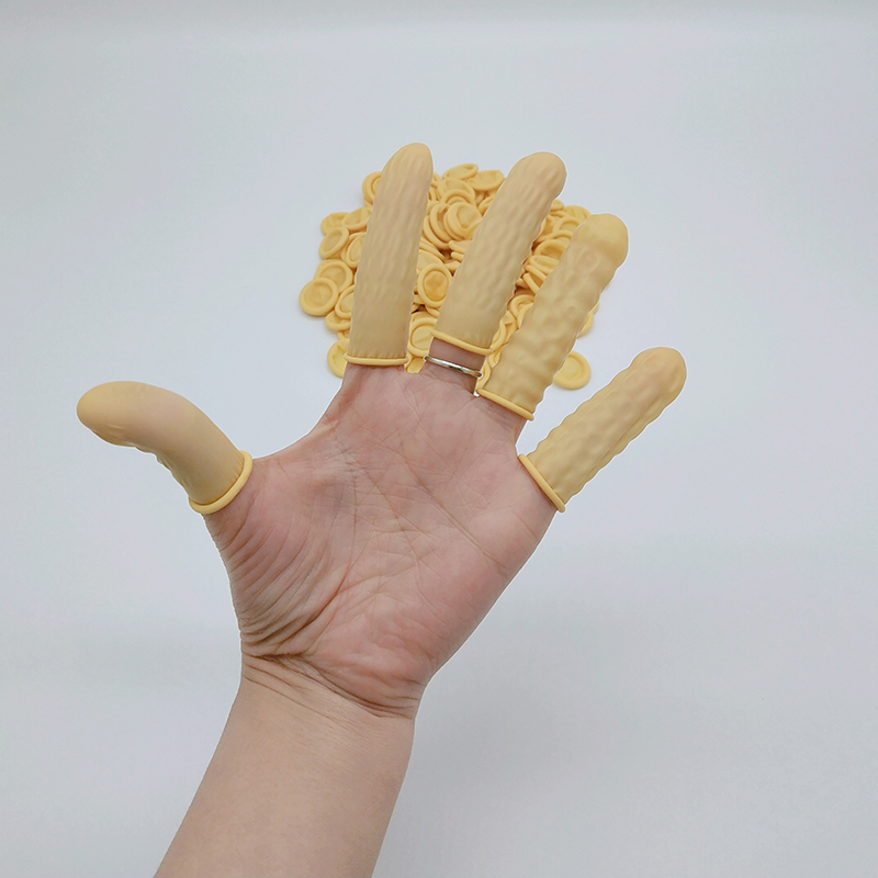 Anti-static beige finger sleeve thickened wear-resistant disposable rubber latex industrial dust-free protective finger sleeve