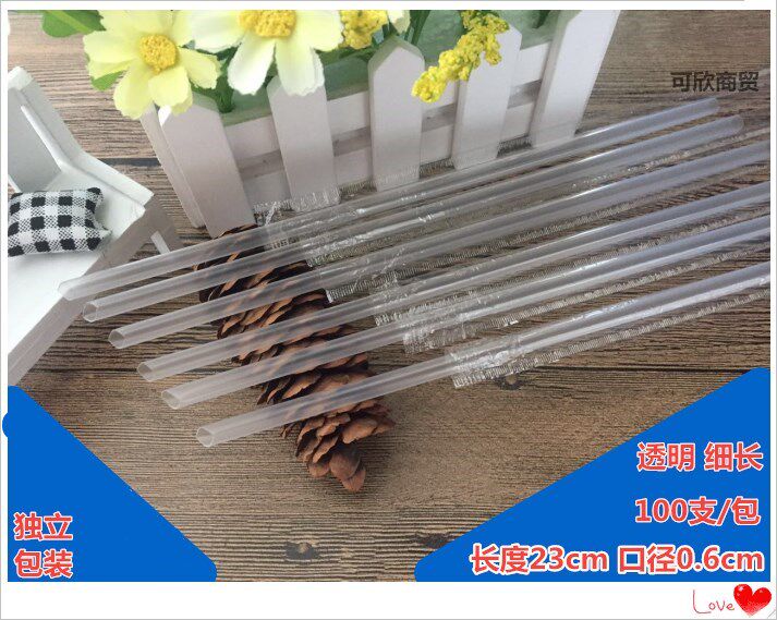 Colorful thin straws, 23cm long, 6mm diameter, disposable juice milk tea beverages, individually packaged 100 pieces