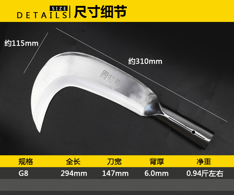 Master Zhou Chrome steel large machete long handle lawn mower agricultural pruning knife curved head wood knife road opening knife agricultural tool sickle