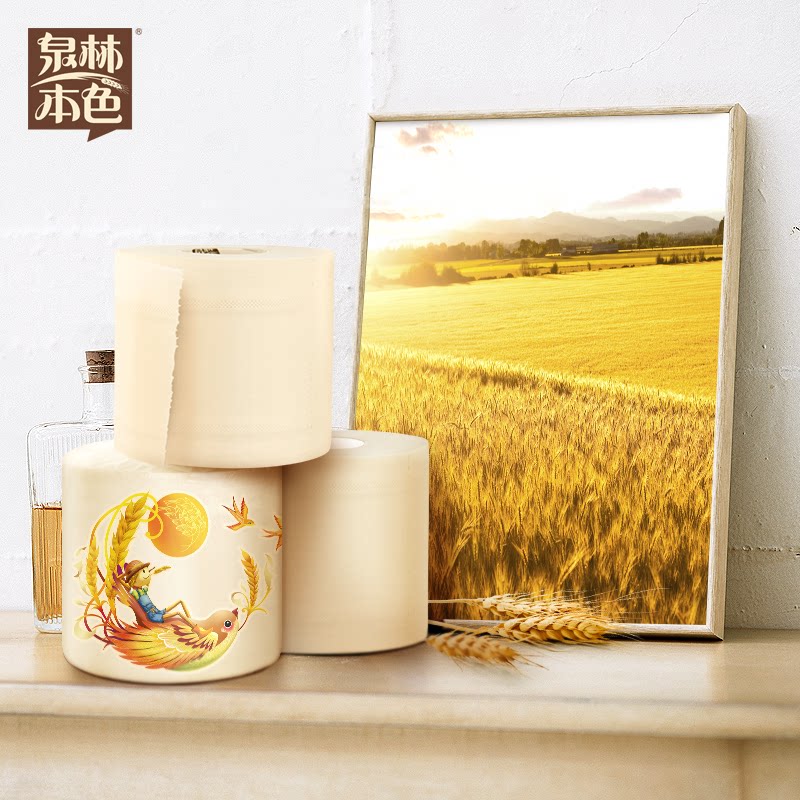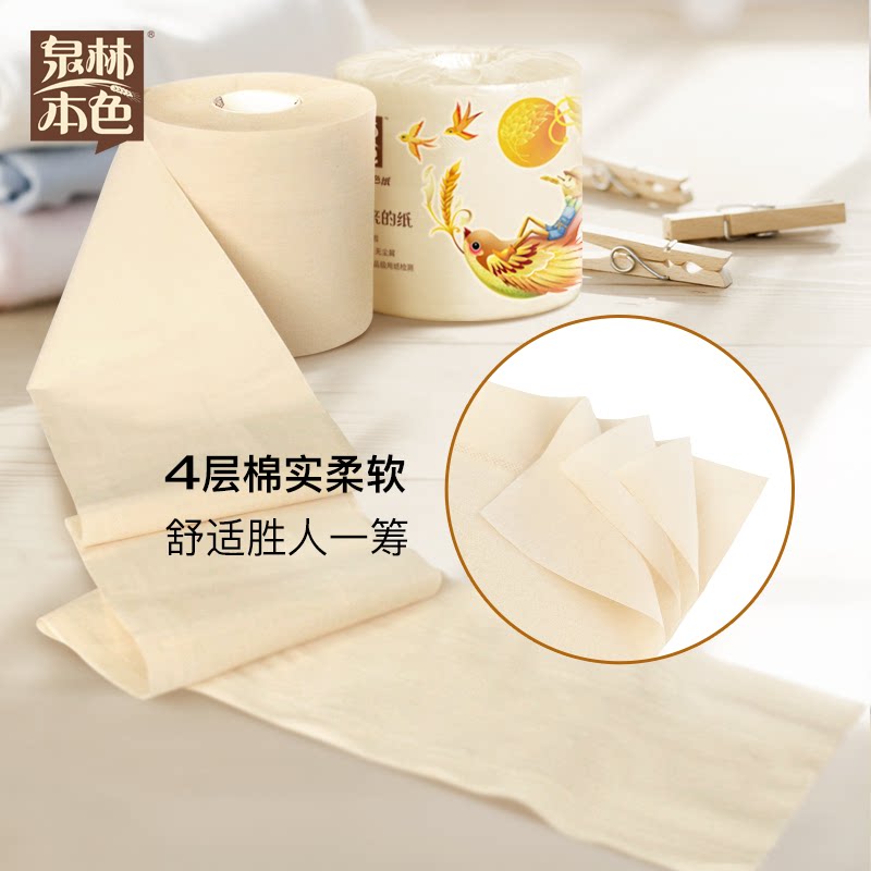 Quanlin Natural Color Toilet Paper Rolls Paper color paper Home paper towel not bleached 4-layer 140g27 roll