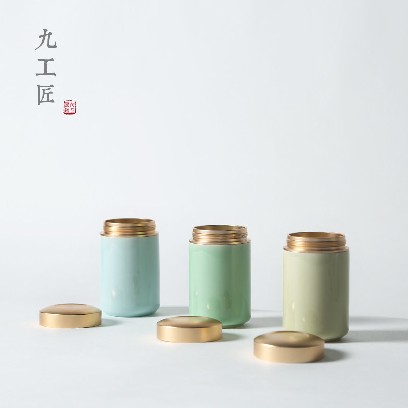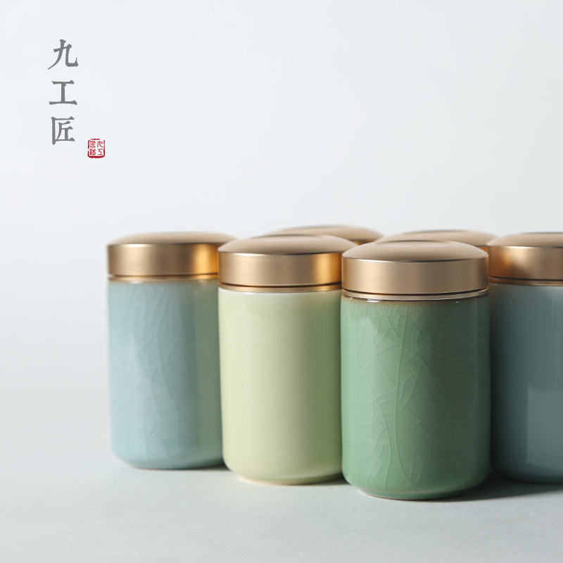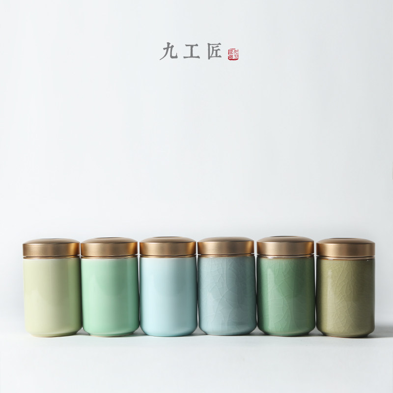 Nine craftsmen celadon mini sealed tea can Japanese travel portable with tea box small ceramic tea warehouse
