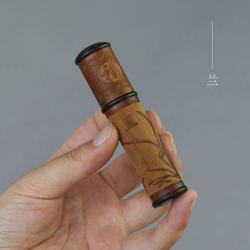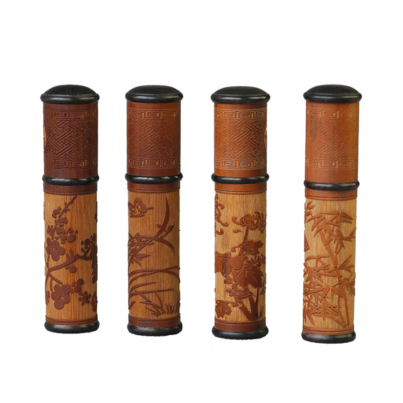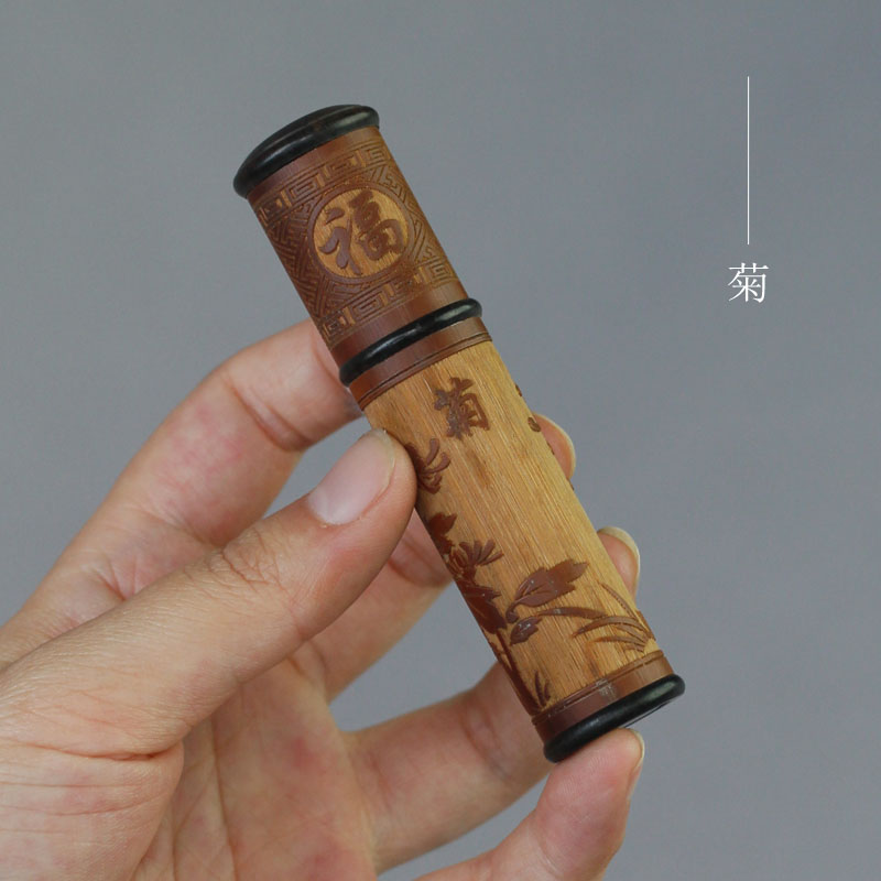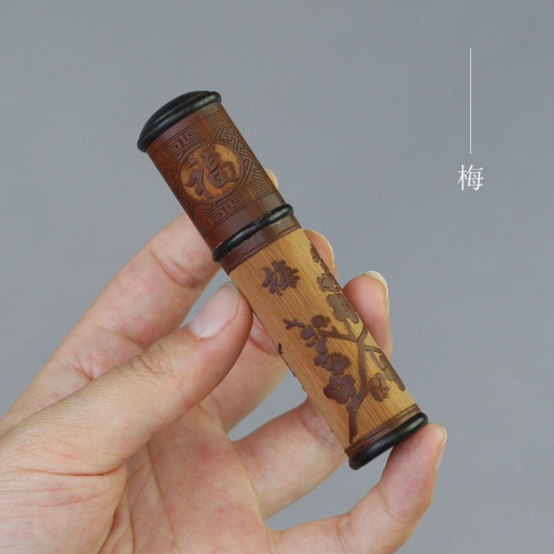Bamboo carving mini small incense tube toothpick tube plum orchid bamboo chrysanthemum travel portable tea pot Incense Road play creative high-grade
