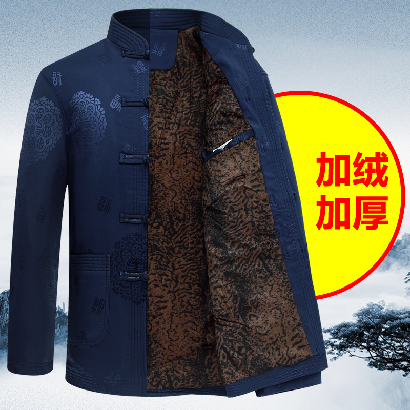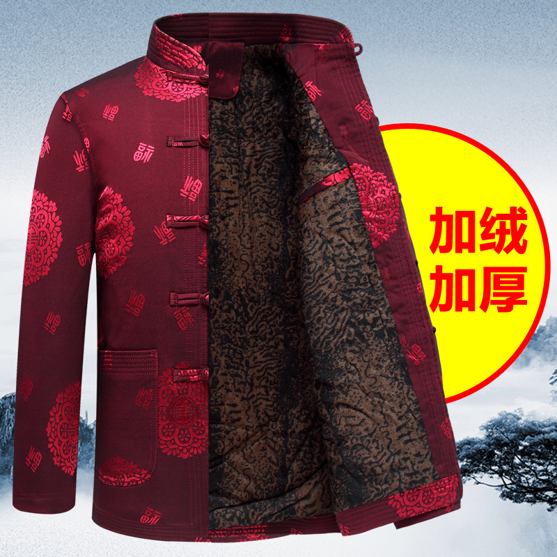 Winter Down the men's mid-aged men's men's clothing plus velvet thickened cotton clothes Father's dad cotton padded jacket for grandpa