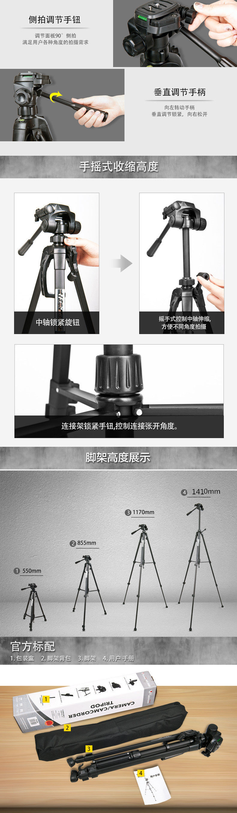 Weifeng 3520 Single Eye Camera Tripod Photographic Videography Portable Micro Single Eye Camera Tripod Phone Self Selfie Live Bracket