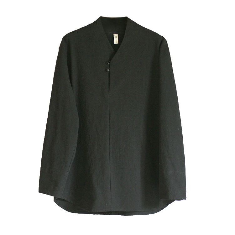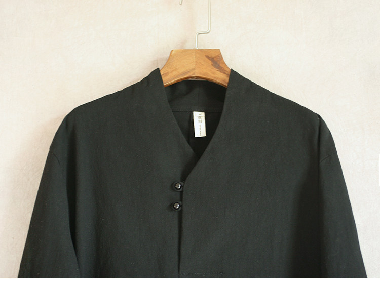 Shirt long sleeve coat men's loose cotton linen black shirt casual Chinese style linen outside wear tea coat