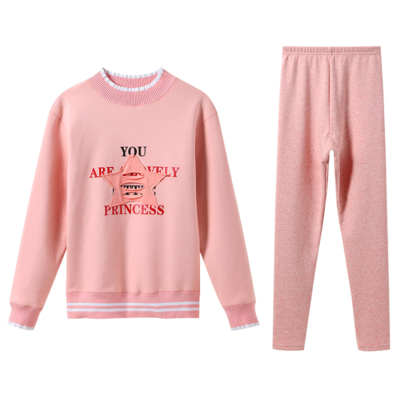 Teen Plus Suede Thickening Junior High School High School Large Boy Teen Girl Fever Clothes Autumn Clothes Sanitary Pants Suit Cotton Sweatshirt Winter