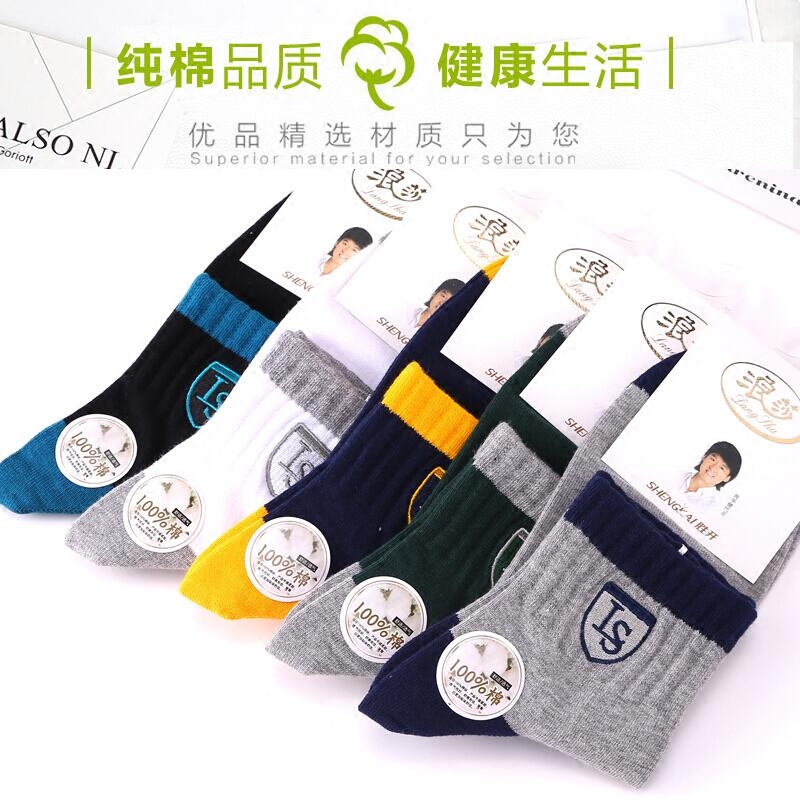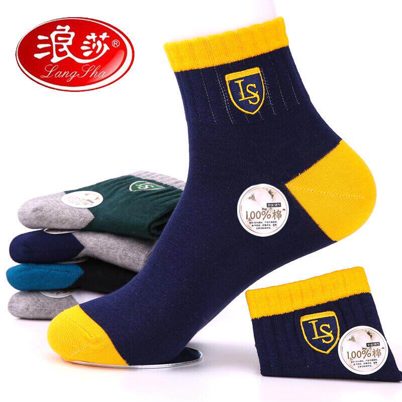 Sura (Langsha) autumn winter new socks men's pure cotton deodorant basketball socks midcylinder casual cotton socks breathable