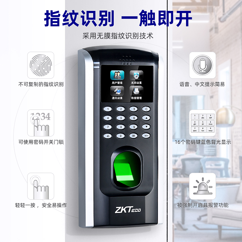 ZKTeco entropy technology F7plus swipe fingerprint recognition access control system set punch card machine attendance access control integrated machine access control controller company glass door wood door iron door electric plug lock