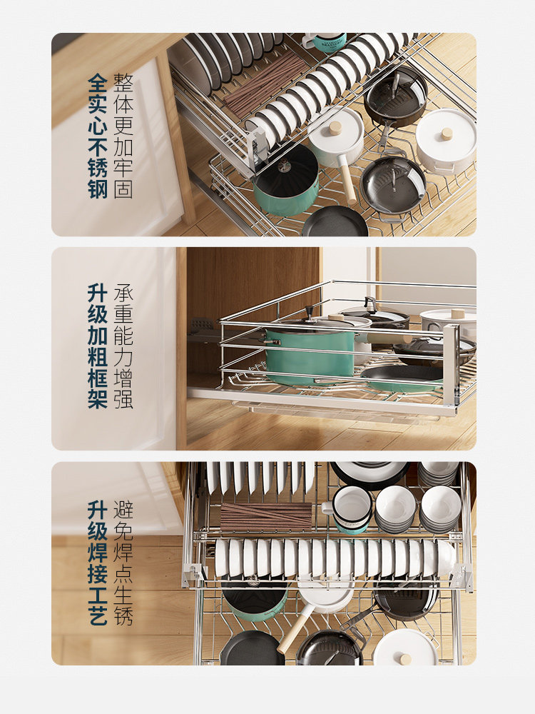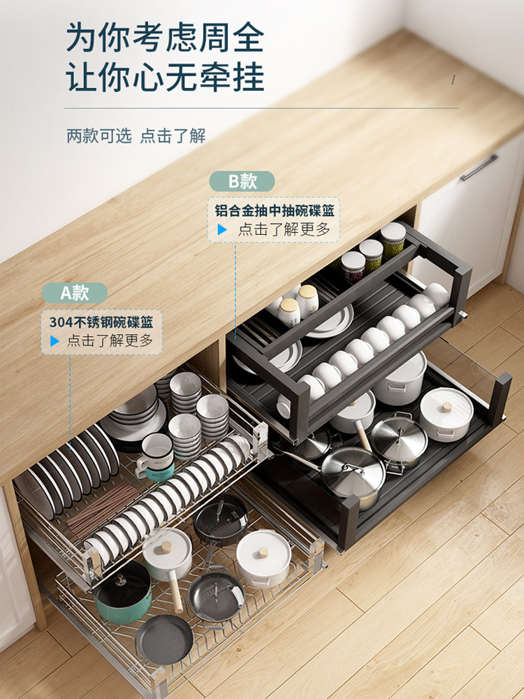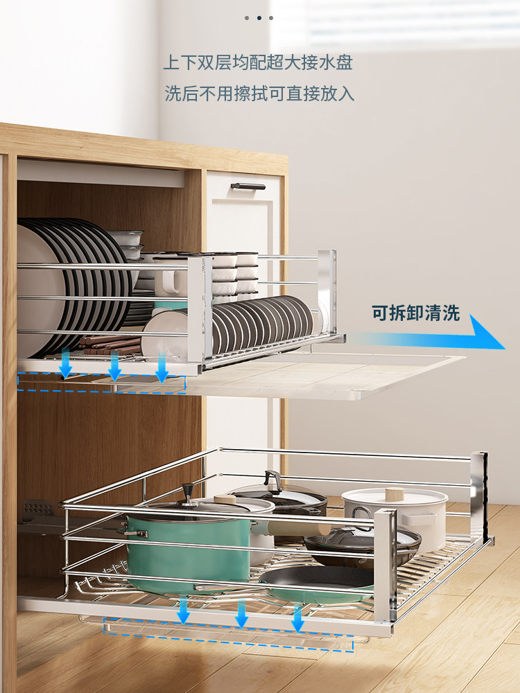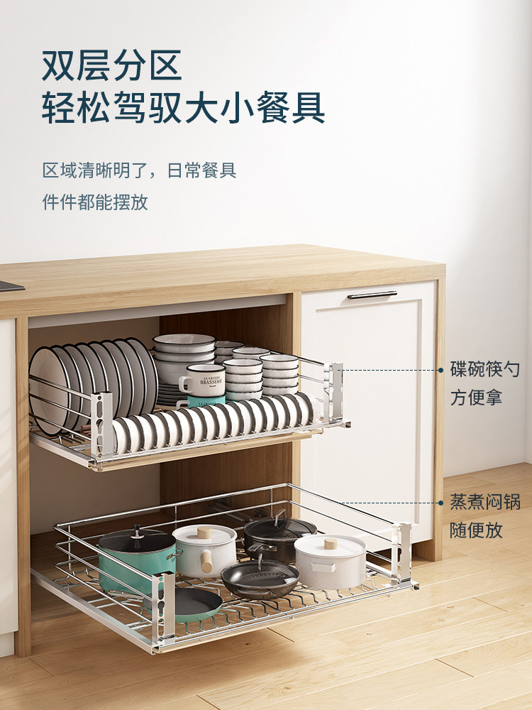 Wrigley double kitchen cabinet seasoning basket 304 stainless steel dish basket bowl rack drawer type storage rack