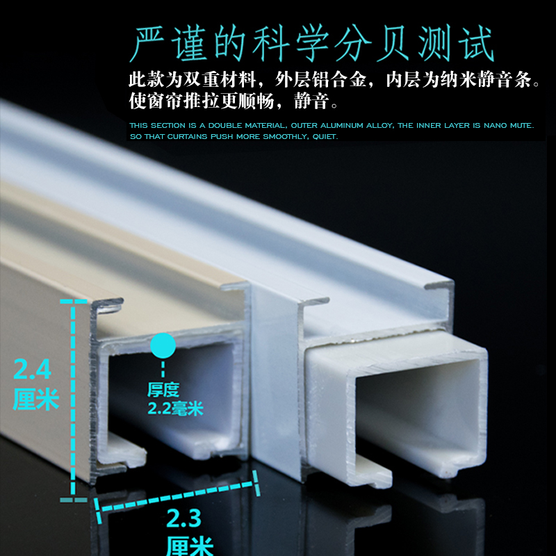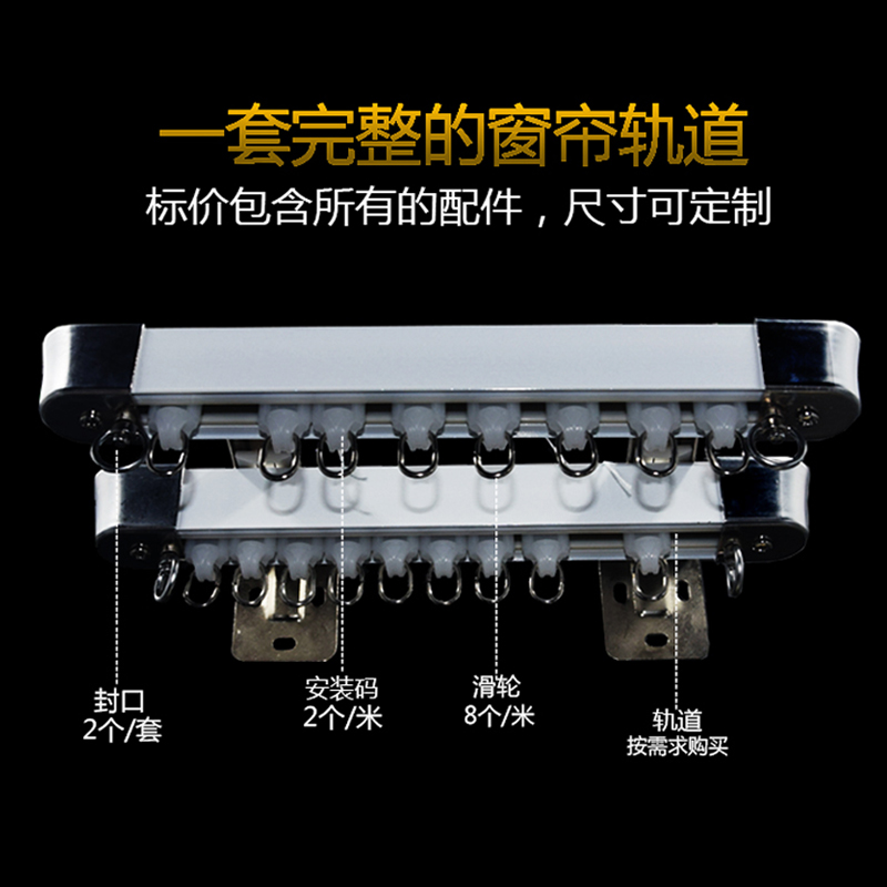 Thickened Aluminium Alloy Curtain Track Nano Silent Curtain Single Track Double-Lever Roman Slide Rail Guide Top Fitting Side Loading