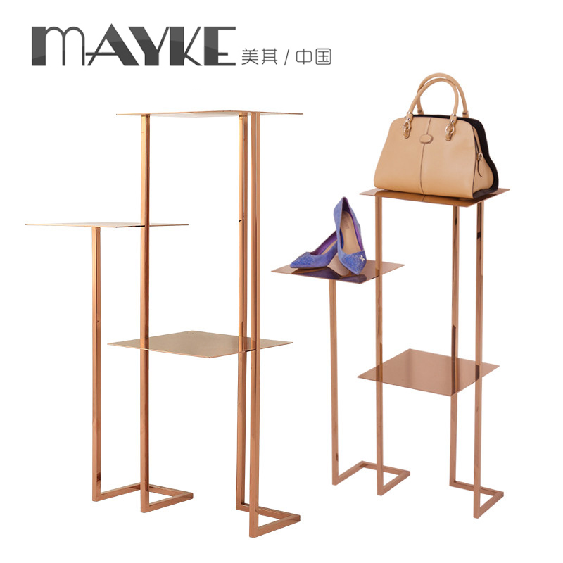 Stainless steel combination window display stand High and low water display stand Shoes, bags and clothing store display stand