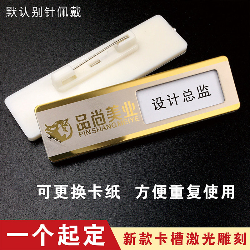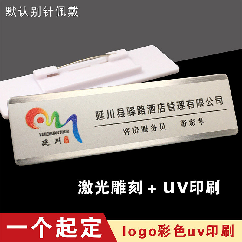 Stainless steel badge custom magnet pin job number plate custom metal badge making hotel employee name badge