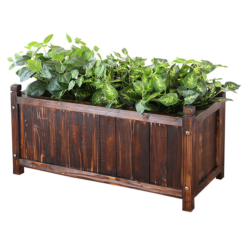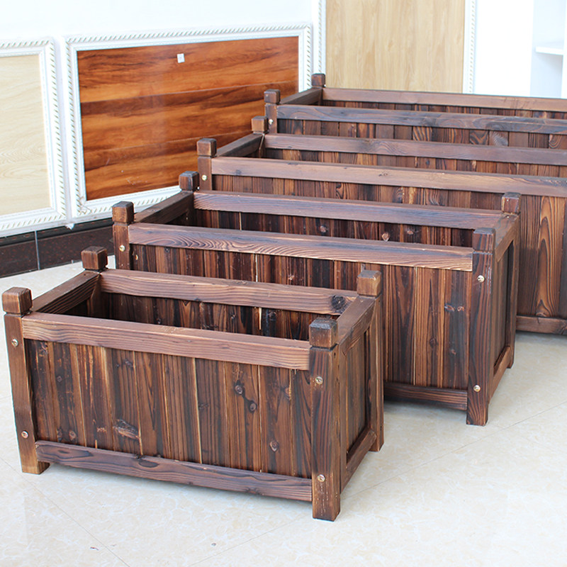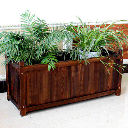 Carbonated wood flower pot special large number rectangular strip balcony anti-corrosive wooden outdoor flower case solid wood type vegetable basin home