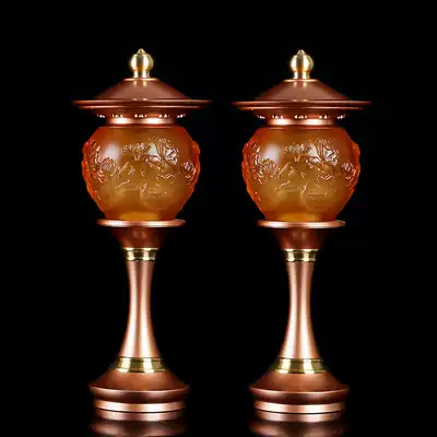Buddha front supply set pure copper glass incense burner for Buddha lamp holy water cup amber glaze Buddha decoration