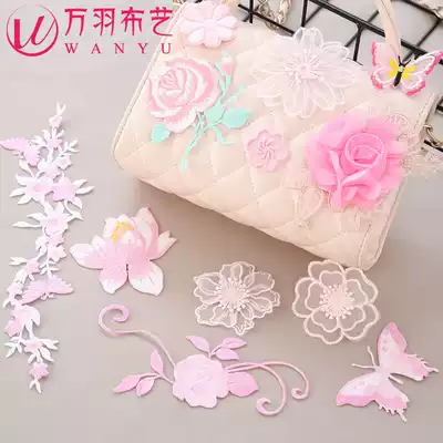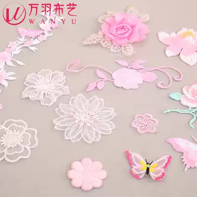 Pink flower cloth patch embroidery butterfly rose pattern clothes hole stickers flower cheongsam clothing accessories cloth stickers