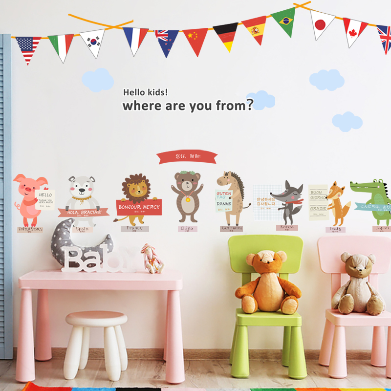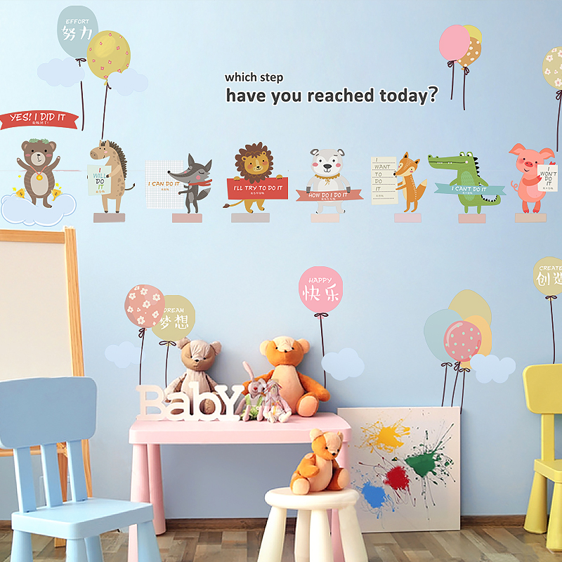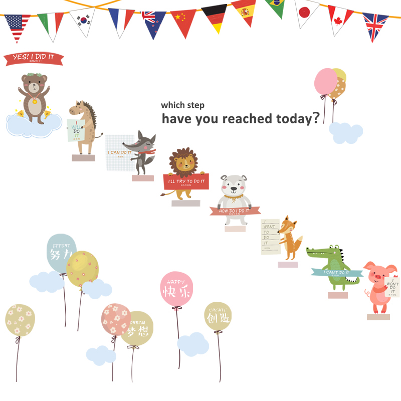 Kindergarten English classroom layout decoration inspirational wall stickers creative cartoon early education words children room stickers