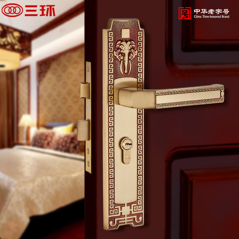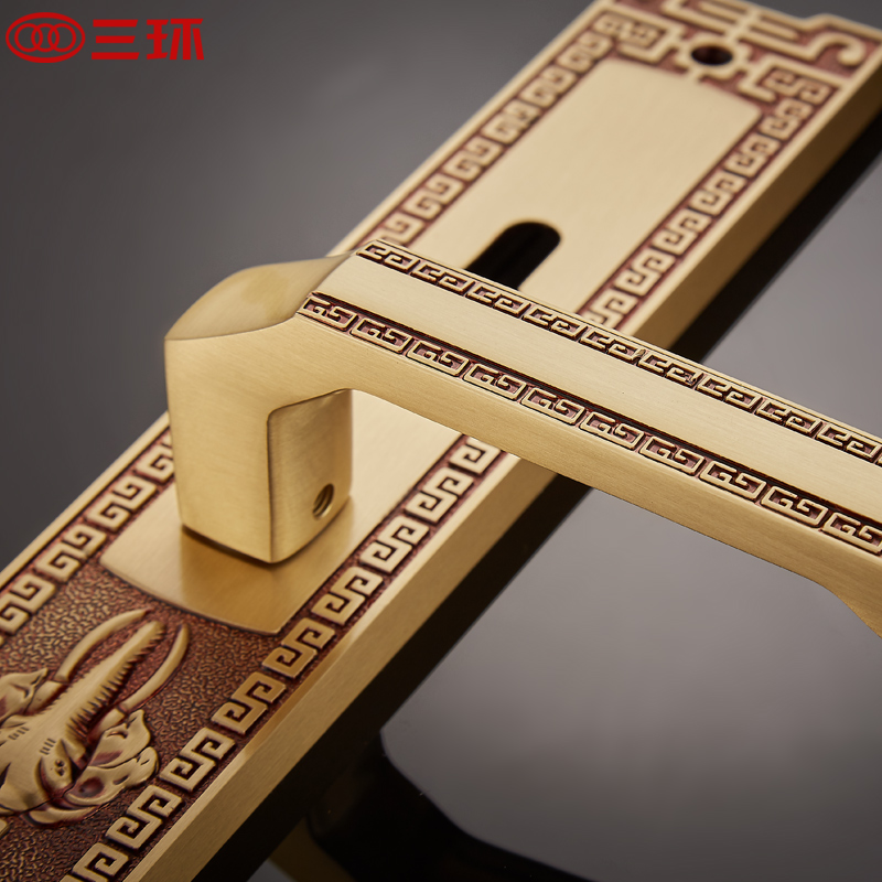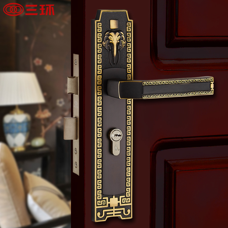 Three-ring new Chinese-style pure copper door lock indoor mute antique solid wood door handle bedroom door panel hand lock 9928