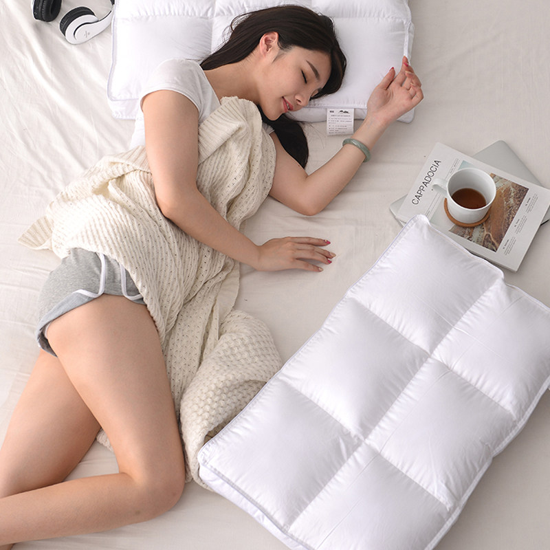 Upscale five-star hotel ultra soft feather pillow full cotton pillow core washable low mid neck protection pillow solid pillow core