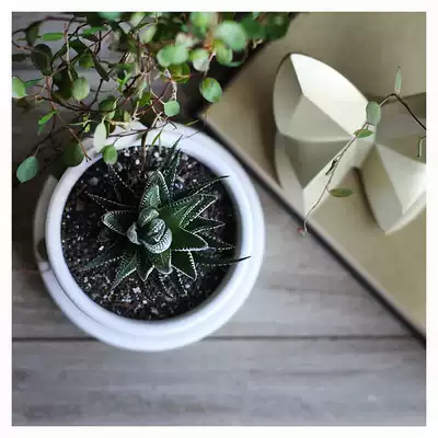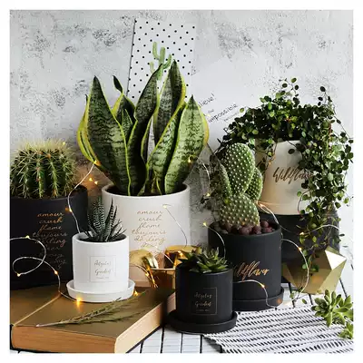 WOOKEN Nordic plant flowerpot gold cement fleshy pottery basin porcelain black and white cylindrical perforated bottom