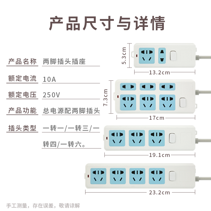 Two-Plug Plug plug two-pin extension cord power socket household plug two-core extension cord two-plug wiring board