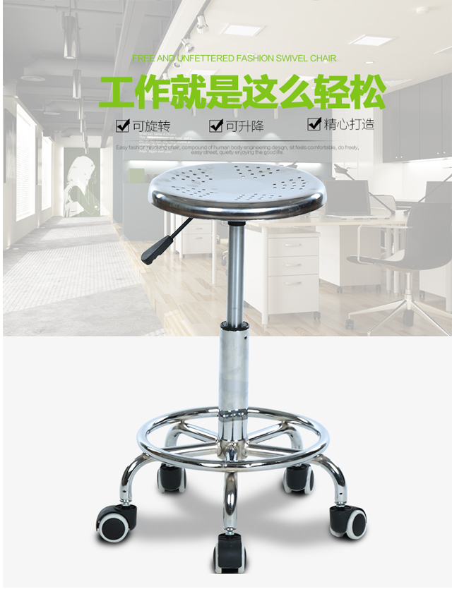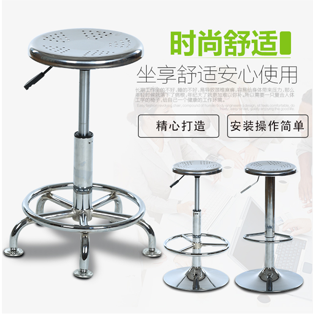 Stainless steel round stool bar chair hair lifting rotating stool laboratory assembly line production workshop staff chair