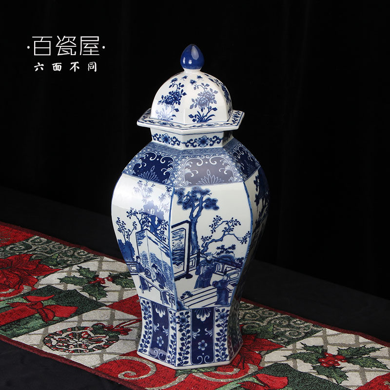 Jingdezhen ceramic Chinese imitation antique extra-large green flower General pot vase swinging piece living room adornment Xuanguan Bogu frame