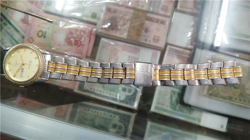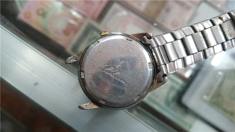 Good pint LUKCOM green violin striped disc double calendar quartz men's table
