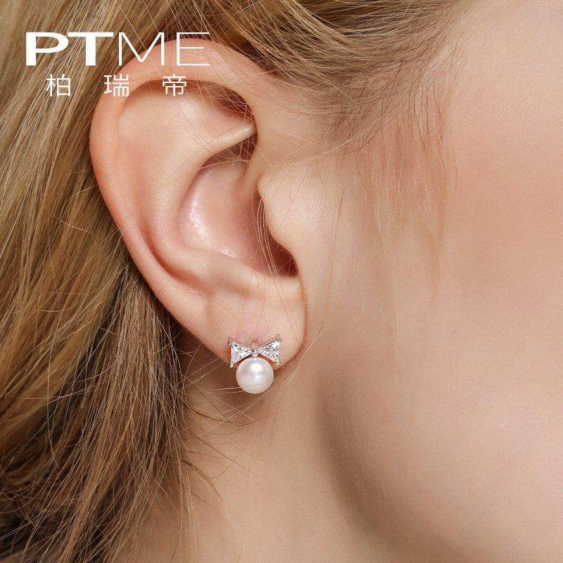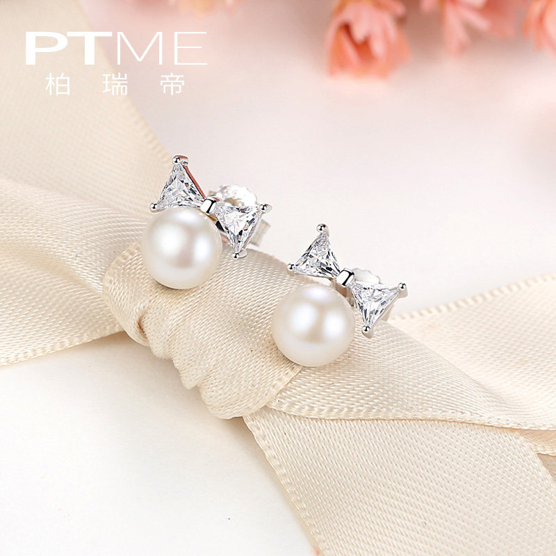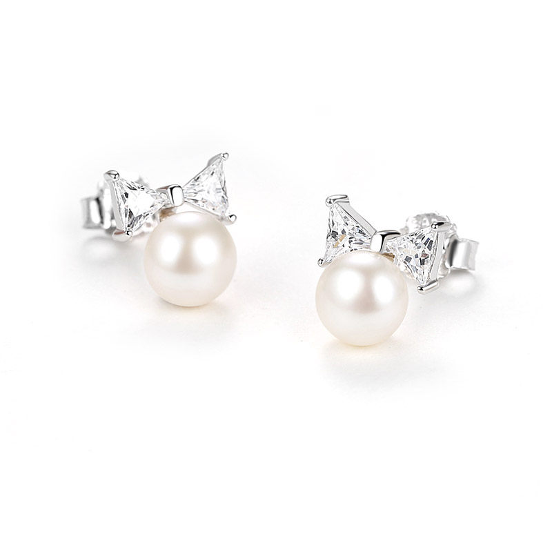 Sterling silver studs female pearl earrings Korean temperament simple synthetic crystal bow cute ear jewelry small