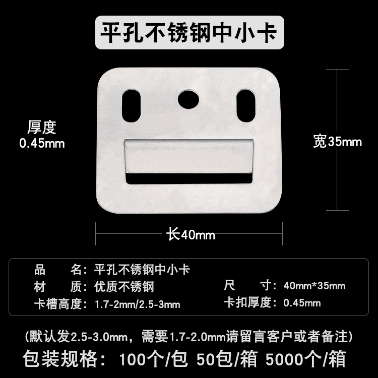 Flat hole stainless steel medium card 45*33 (5000 boxes)