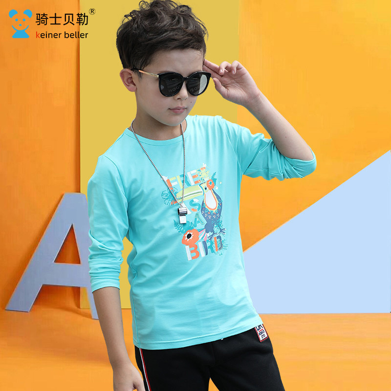Boy Clothing Boy Long Sleeve T-shirt Autumn Dress Round Collar 2022 New CUHK Boy Boy 12 Han Edition 15-year-old white T-shirt