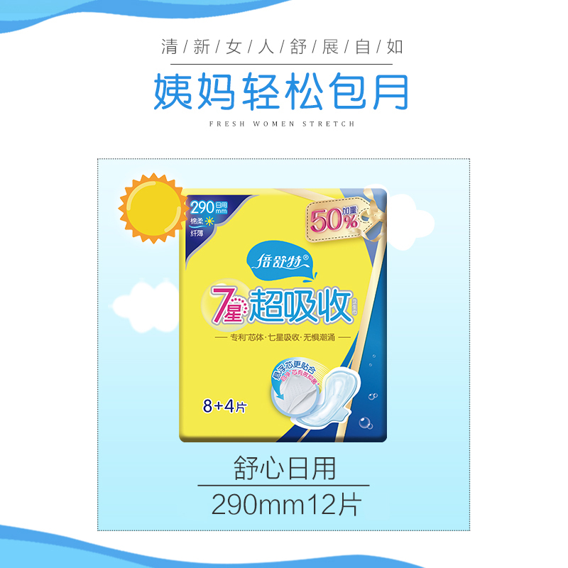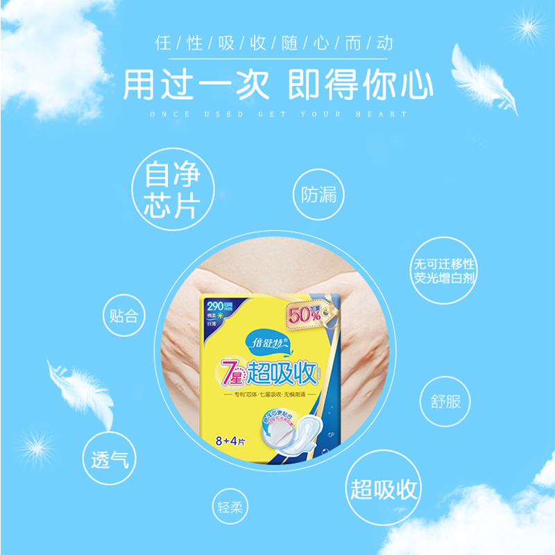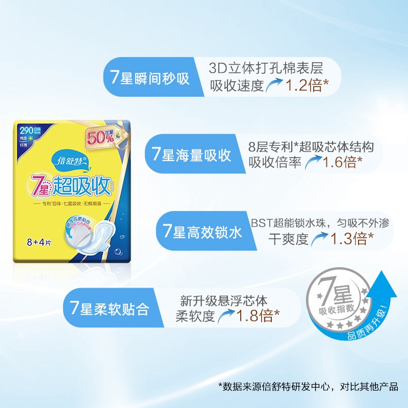Beishute 7-star sanitary napkin 4 packs day and night with 290mm 60 pieces of cotton soft whole box wing protection aunt towel brand official