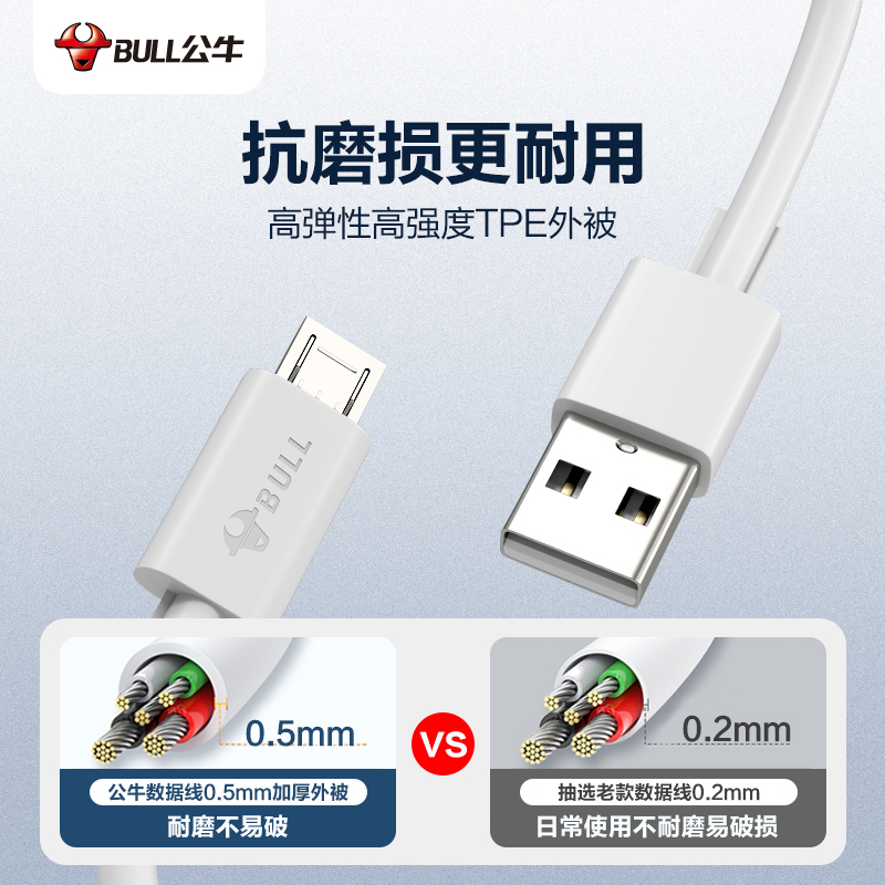 Bull Android Data Line Quick Charge Lengthened Mobile Charging Table Light Bluetooth Headset MicroUSB Charging Wire Instrumental Suitable for Huawei Vivo Samsung oppo Honor Mobile Phone Quick Lead Flash Short