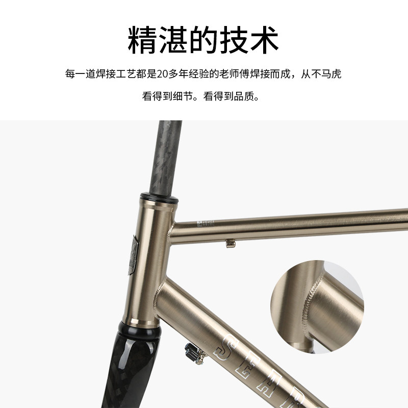 Seaboard Yunan bank CR03 road bicycle steel frame RA01 upgraded version brushed silver carbon fiber front fork