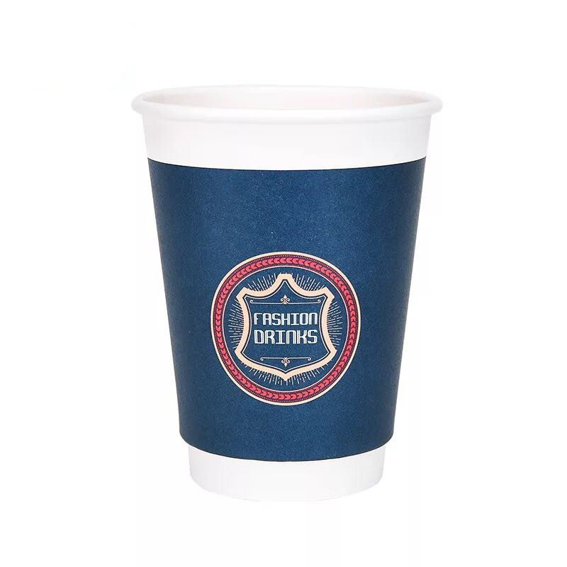Xintianli hollow cup 380470ml disposable paper cup thickened double-layer insulation with lid milk tea hot drink cup