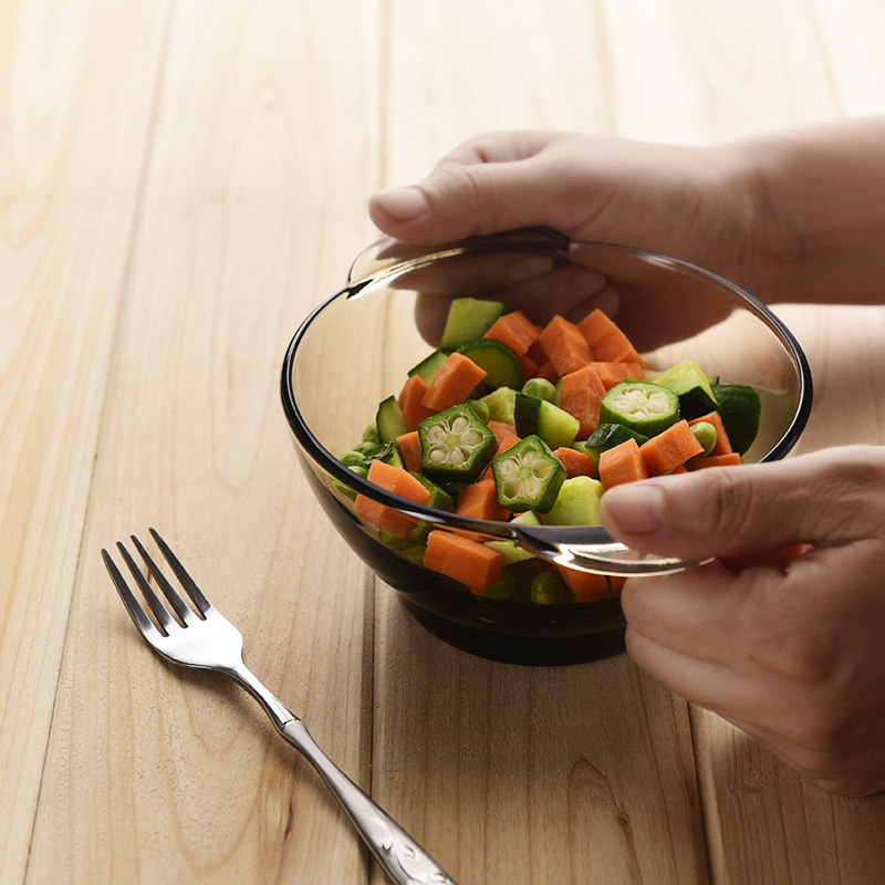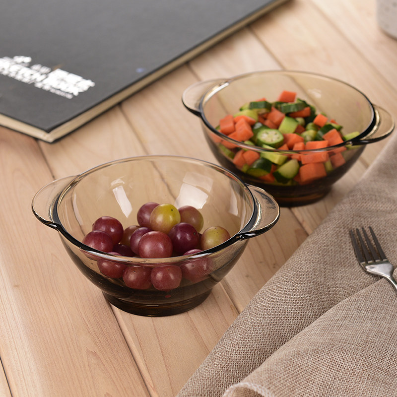 Nordic tea colour tempered glass bowl heat resistant double ear soup bowl 2 pieces of rice bowl double ear salad bowl with microwave oven
