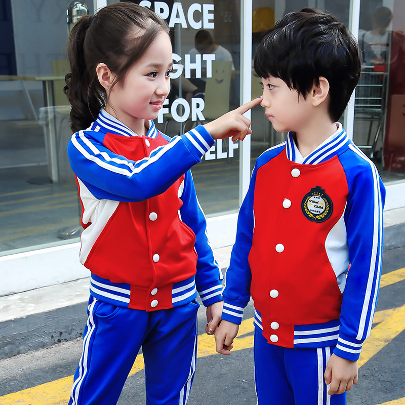 Pure cotton kindergarten garden clothes Spring and autumn children's class clothes Men and women primary and secondary school students uniform Baseball uniform Sports suit