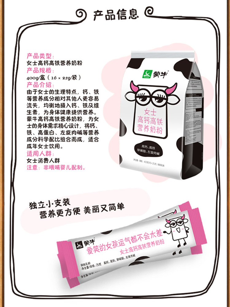 Mengniu lady high calcium high-speed rail milk powder 400g Adult small strip milk powder Student female college student brewing drink breakfast