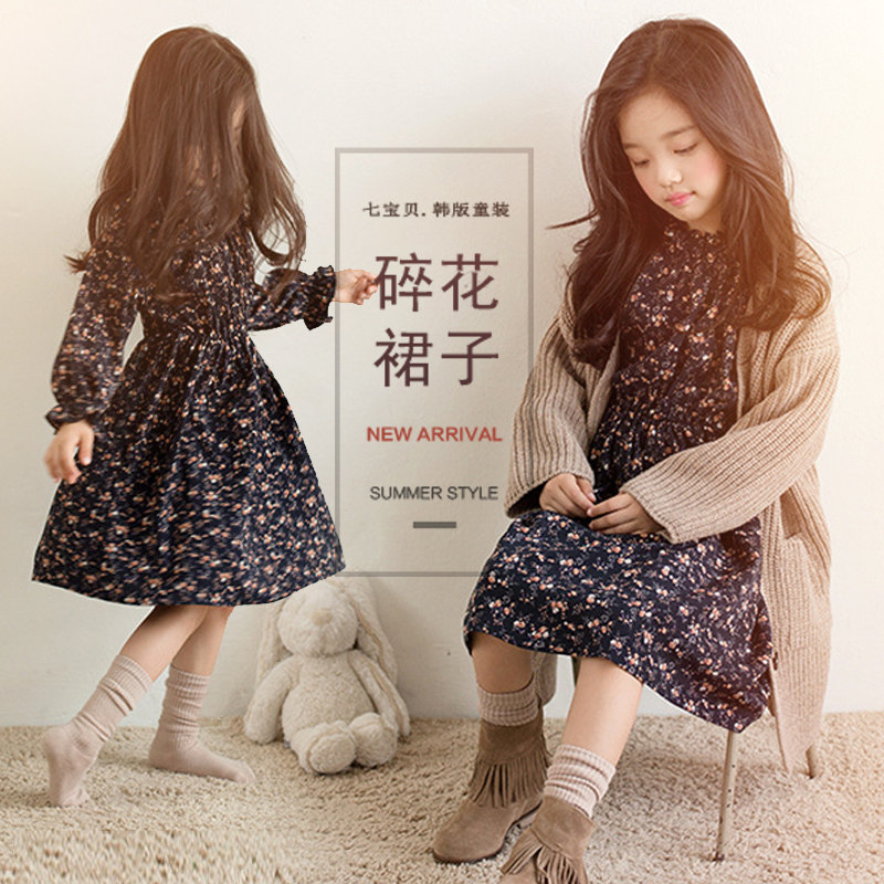 Girls' autumn dress children long sleeve princess dress 2021 New Korean version of the children spring autumn floral skirt