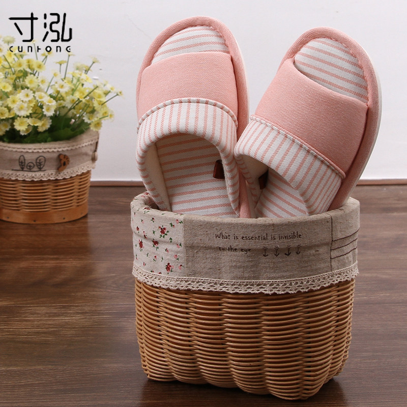 Spring and autumn couples home linen slippers women's indoor thick bottom non-slip mute home floor cotton linen men's slippers summer