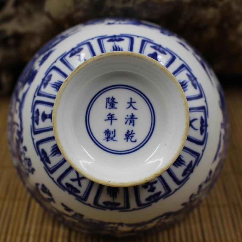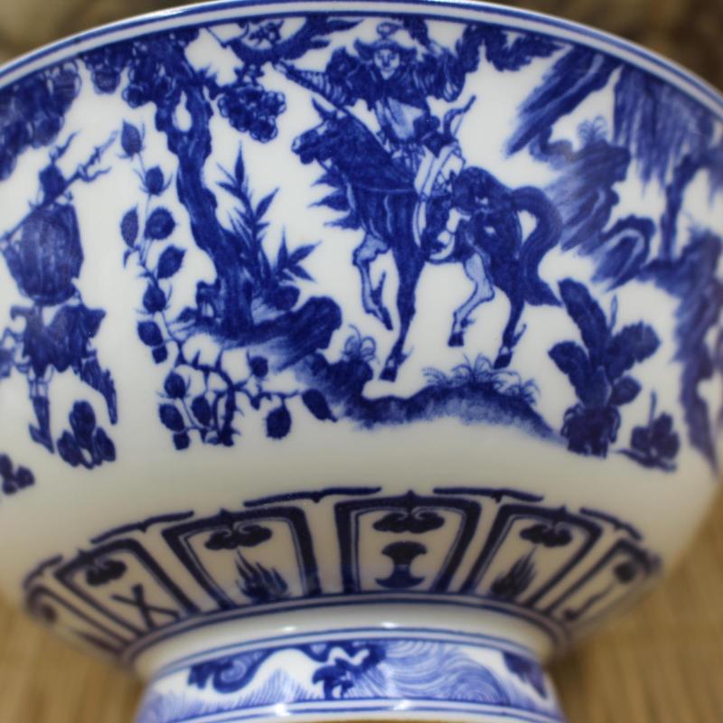 Large Qing Qianlong Lung-year Qinghua figure Ghost Valley Sublower Mountain Grain Bowl Imitation Ancient Pendulum Pieces Porcelain Antique Ancient Play Collection