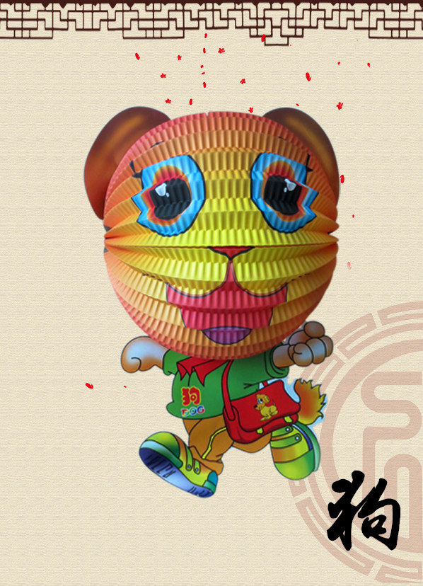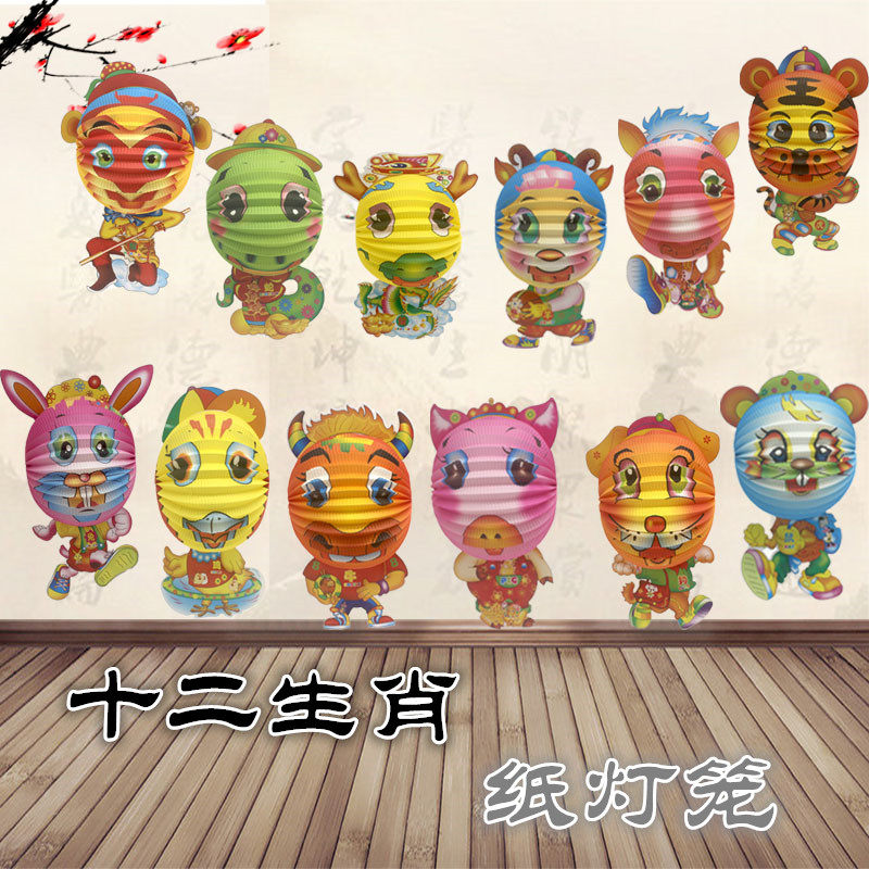 One zodiac non-gilding lantern, one non-gilding fish lantern, one rich dog lantern, one double bull lantern, one plastic rod, one thin candle, one box (24 pcs), one thick candle, one board (24 pcs), A type seven