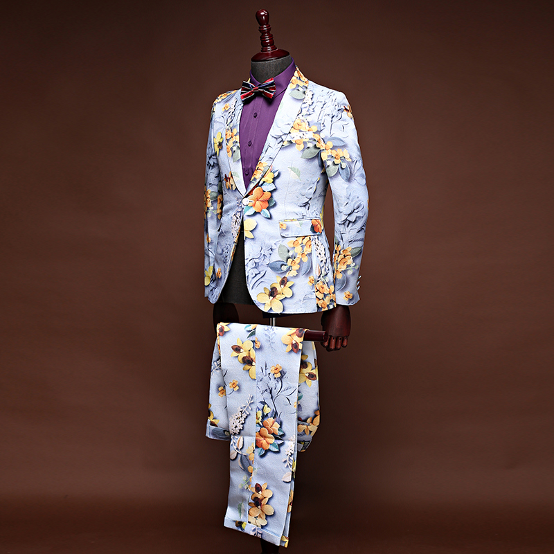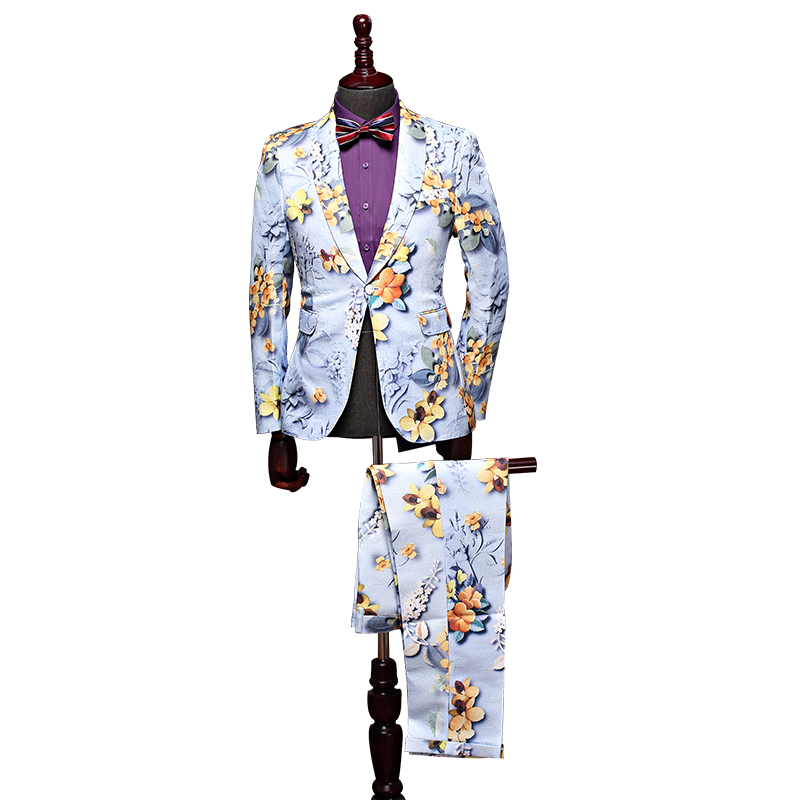 Host Gown for Men's Gown Dress Male Singer Gown Suit Suit Jacquard Flowers West Suit Groom Wedding Gown