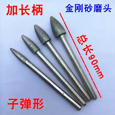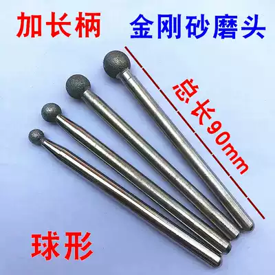 Lengthened diamond grinding head 6mm handle cylindrical bullet round ball emery grinding head Total length 90mm electric grinding head