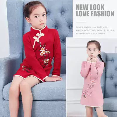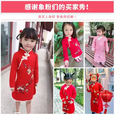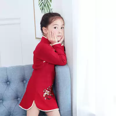 Girl red cheongsam winter dress winter baby baby Tang suit long sleeve children New Year dress Chinese style embroidery
