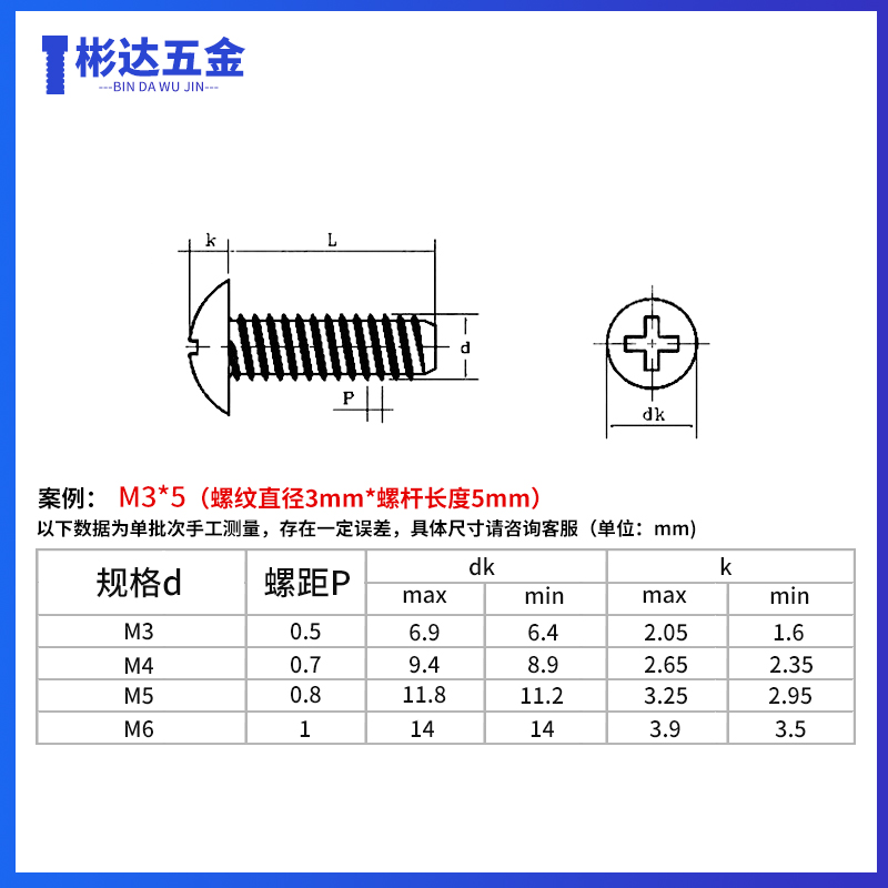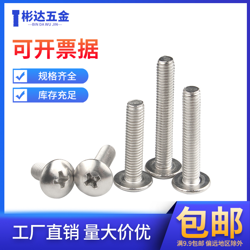 304 stainless steel large flat head screw Mushroom head cross bolt machine wire umbrella head big cap large round head screw M3-M6