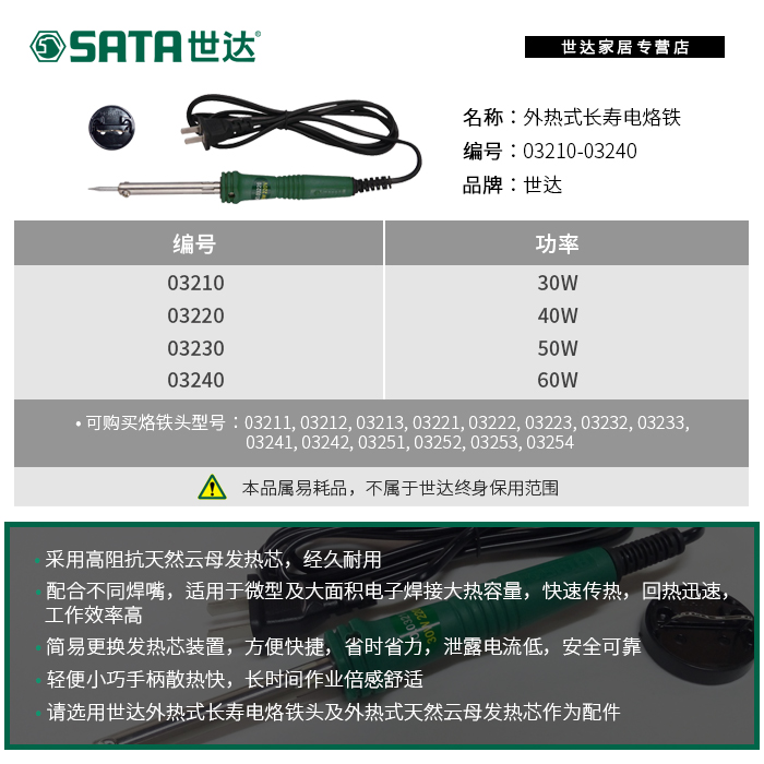 03210 30W external heat type long life electric soldering iron 03220 40W external heat type long life electric soldering iron 03230 50W External heat type long life electric soldering iron 03240