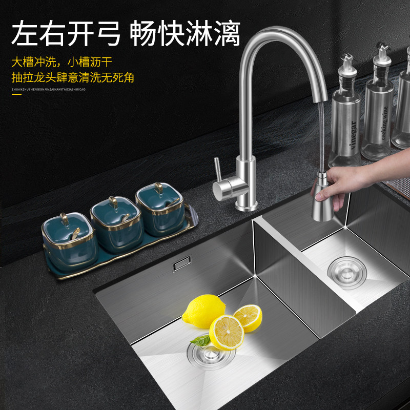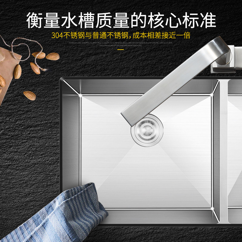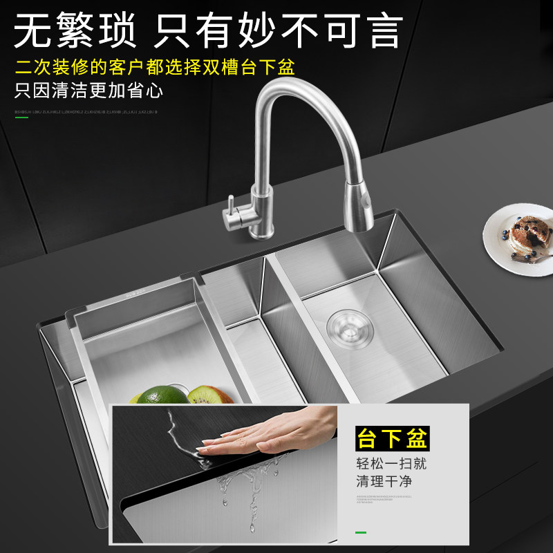 Vegetable wash basin double sink under the counter basin kitchen 304 stainless steel thickened Amoy vegetable basin handmade sink double sink oversized