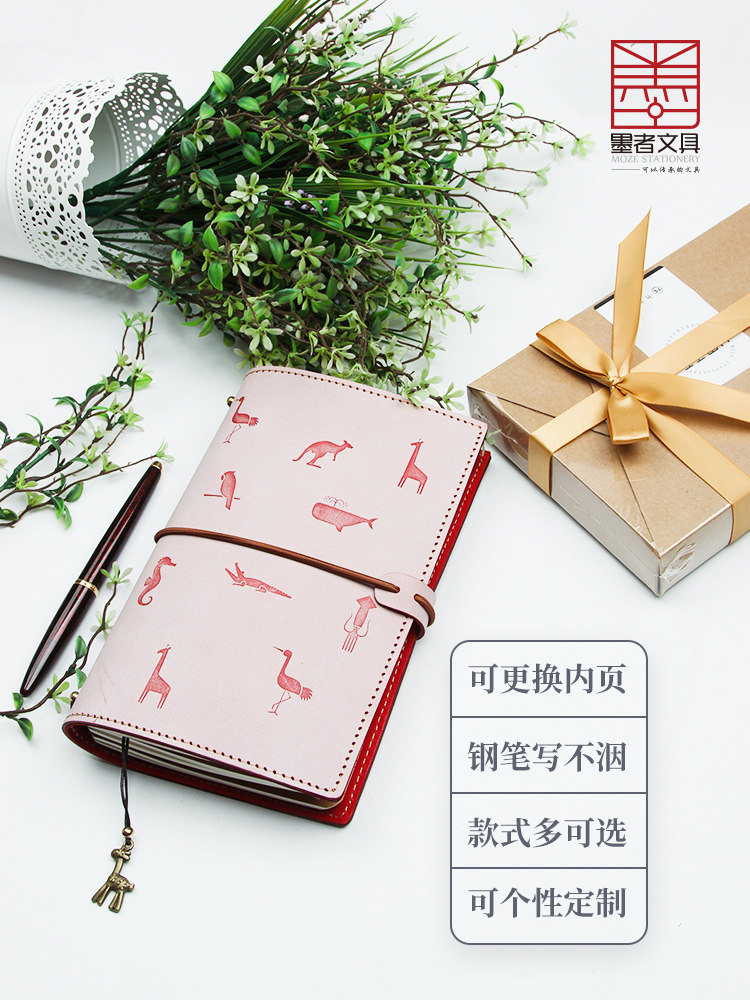 Ink-maker girl's heart leather face tn hand tent Italian head cow leather notepad pink day note book this travel hand tent This Bull Leather Notebook Free custom Inprint Mother's note book
