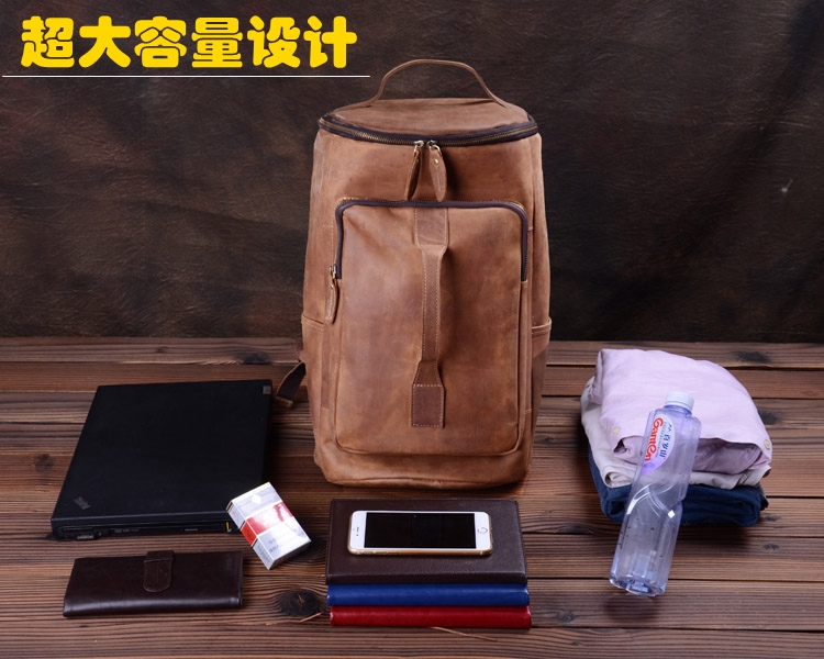 Original Genuine Leather Men's Bag Retro Multifunction Large Capacity Double Shoulder Bag Crazy Mapleather Luggage Travel Bag Men's Bag